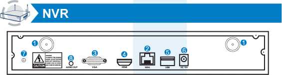 0 WAN Port:Connect your NVR to Internet; ©VGA PortTor viewing on VGA monitor;