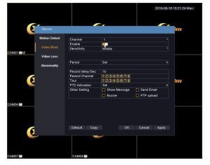 Get into the DVR main menu>sensor>motion detection