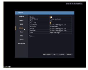 Get into DVR main main menu>network>email